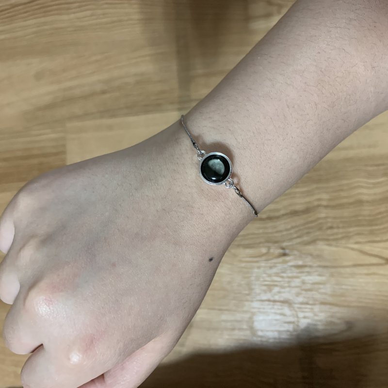 아빠가 생일선물로 사주셨는데 이런 뜻있는 팔찌로 받아서 더 기분이좋네요 ㅎㅎ 저는 반달모양인데 밤에 반짝거린다니 한번 봐야겠어요 ㅎㅎ 줄도 짱짱하고 안끊어질거같아서 좋습니다 착용하면 손목도 여리여리해보이고 다른팔찌들보다 독특한 매력있는거같아요 또 달부분은 입체적으로 동그랗게 올라와있어요 그래서 더 매력적입니다! 소중한사람에게 선물하기 좋은것같아요!